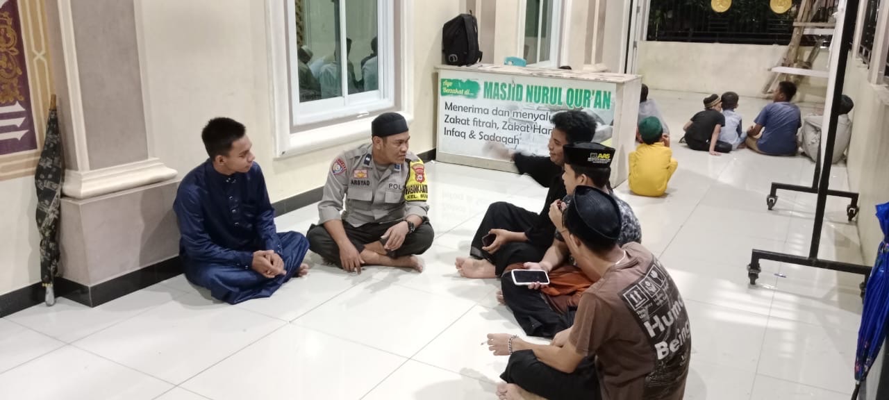 Makassar. Bhabinkamtibmas Kelurahan Buloa Kecamatan Tallo Kota Makassar Aipda Arsyad mengajak para remaja masjid untuk berdiskusi dan berbagi pengalaman usai melaksanakan shalat shubuh di Masjid Nurul Qur’an, Jalan Sultan Abdullah Raya Kelurahan Buloa Kecamatan Tallo, Kota Makassar, Selasa(18/3/2025).