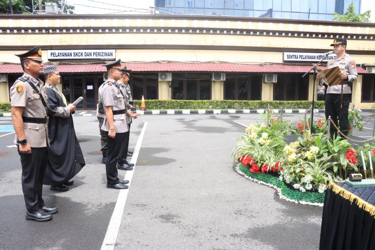 Makassar- Upacara serah terima jabatan Kapolsek Panakkukang dan pelantikan jabatan Kasat Tahti, KSPKT Polrestabes Makassar dipimpin langsung Kapolrestabes Makassar Kombes Pol Arya Perdana, SH, SIK, M.Si, bertempat di Lapangan Apel Polrestabes Makassar. Rabu (19/03/2025).