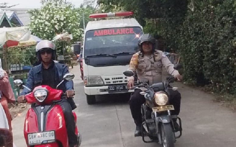 Pengawalan yang dilakukan oleh bhabinkamtibmas Katimbang untuk mengantisipasi terjadinya aksi ugal-ugalan dari rombongan pengantar jenazah.