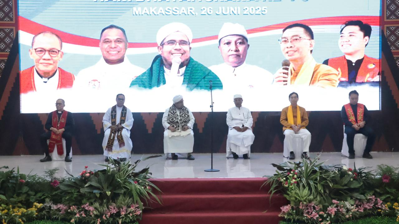 Makassar – Dalam rangka menyambut Peringatan Hari Bhayangkara ke-79 Tahun 2025, Kepolisian Daerah Sulawesi Selatan menggelar kegiatan Doa Bersama Lintas Agama yang dilaksanakan di Aula Mappaoddang Mapolda Sulsel, Kamis (26/06/2025). Kegiatan ini menjadi wujud sinergi dan kebersamaan antarumat beragama dalam menjaga harmoni bangsa.