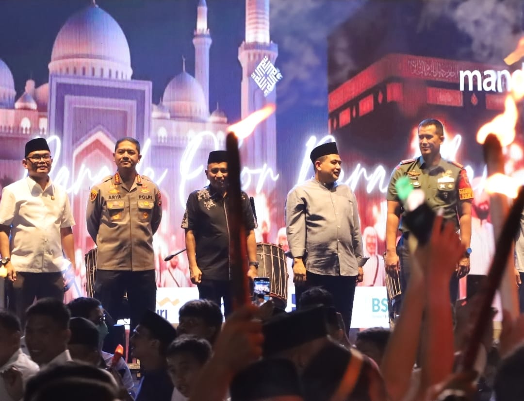 Pawai Obor dilepas oleh Wali Kota Makassar, Munafri Arifuddin bersama Kapolrestabes Makassar, Dandim 1408 Mks.Kolonel Inf. Frangki Susanto.