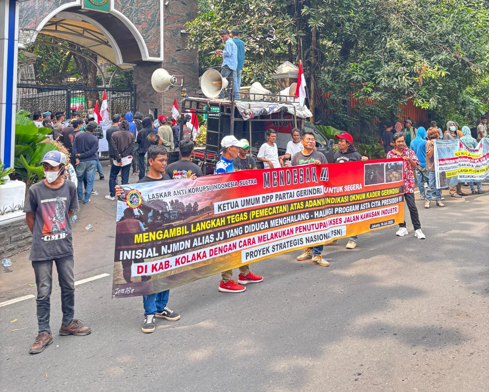 Menariknya, DPD LAKI juga menyeret aspek politik ke dalam tuntutan mereka. Mereka mendesak Ketua Umum DPP Partai Gerindra untuk mencopot seorang kader asal Sulawesi Selatan berinisial NJMDN alias JJ, yang diketahui merupakan pemilik PT. TRK. JJ disebut-sebut sebagai sosok yang bertanggung jawab atas penguasaan jalan hauling yang berujung pada penutupan akses strategis di kawasan industri Pomalaa.