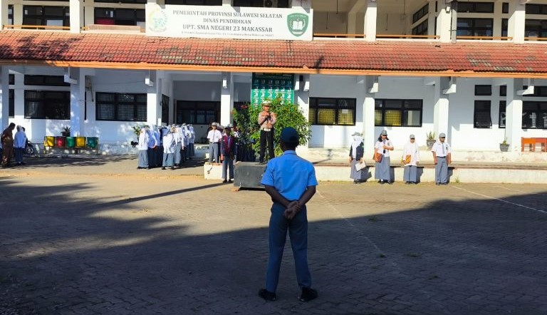 Makassar – Mewakili Kapolsek Tamalanrea, Kompol Muhammad Yusuf, S.Sos., M.M., Kanit Lantas Polsek Tamalanrea, AKP Jamaluddin, kembali menggelar kegiatan Police Go to School dan bertindak sebagai Inspektur Upacara dalam pelaksanaan upacara bendera di SMA Negeri 23 Makassar, yang berlokasi di Jalan Perintis Kemerdekaan I, Tamalanrea, pada Senin, 4 Agustus 2025.