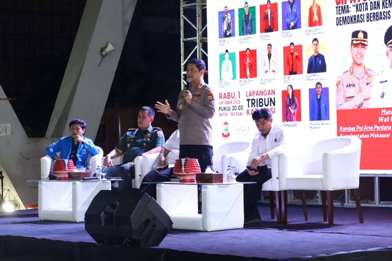 Makassar- Berkaca dari unjuk rasa yang belakangan marak terjadi di berbagai wilayah di Indonesia dan berujung anarkis sampai terjadi penjarahan dan maraknya aksi perang kelompok di Kota Makassar Cipayung Plus Kota Makassar mengadakan dialog kerakyatan dengan tema “Kota dan Kemanusiaan: Mewujudkan Demokrasi Berbasis HAM”. Bertempat di Tribun Karebosi Makassar, Rabu malam (01/10/2025).