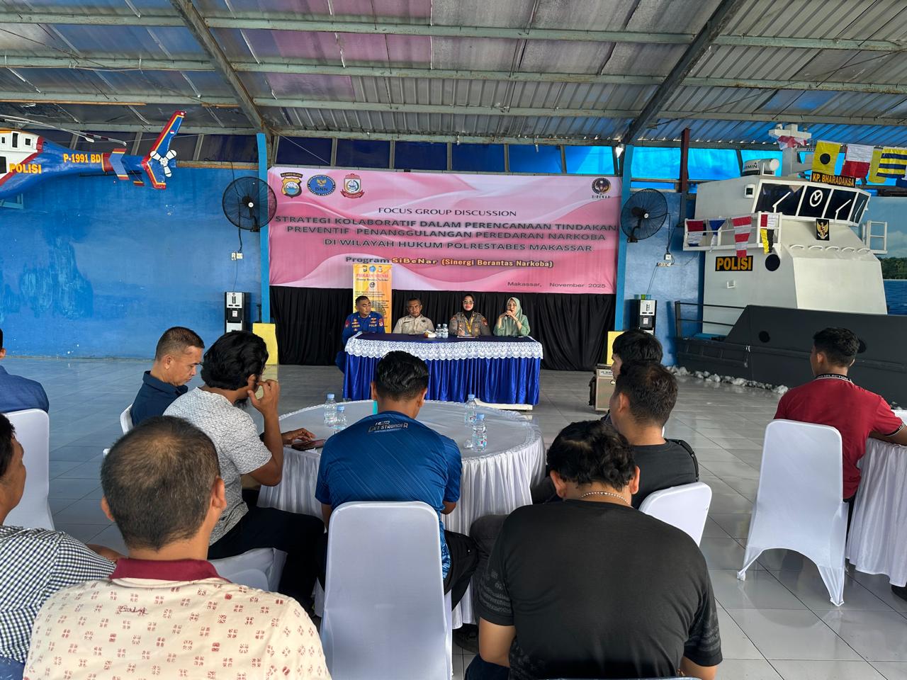 Makassar – Dalam rangka memperkuat sinergi dan kolaborasi lintas instansi serta elemen masyarakat dalam upaya pencegahan dan penanggulangan peredaran narkoba di Kota Makassar, Polrestabes Makassar melaksanakan Focus Group Discussion (FGD) Program SIBENAR (Sinergi Berantas Narkoba) pada hari Selasa, (11/11/2025), bertempat di Aula Dirpolairud Polda Sulawesi Selatan.