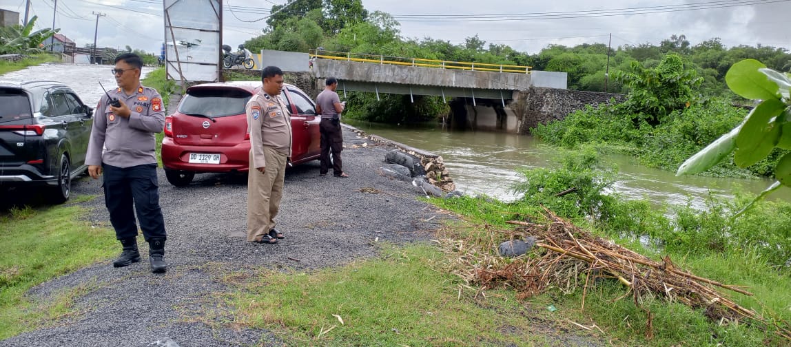 Kapolsek Biringkanaya Cek Kondisi Debit Air Sungai Biring Je’ne, Imbau Warga Waspada