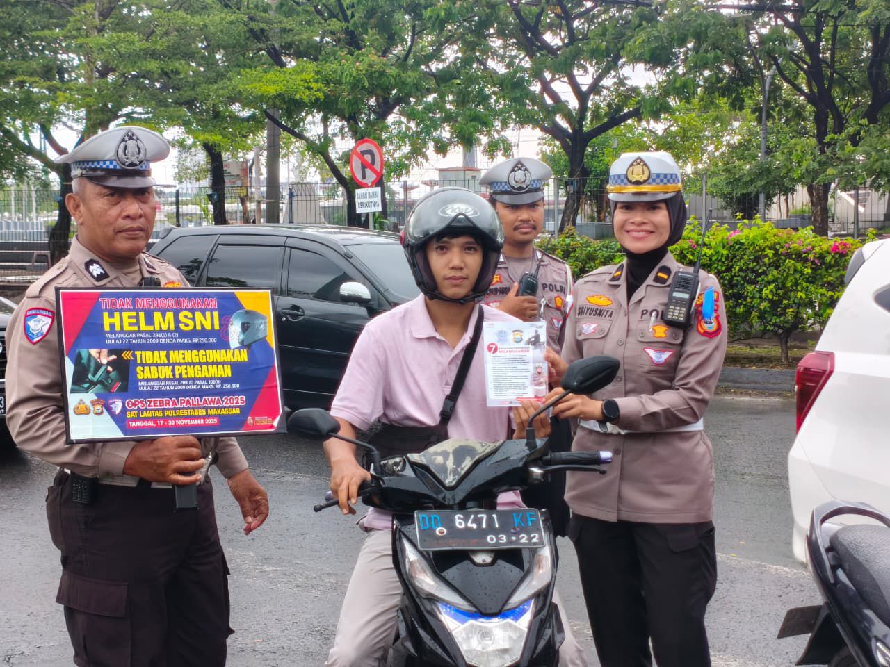 Makassar – Satlantas Polrestabes Makassar terus menggencarkan sosialisasi keselamatan berkendara dalam rangka Operasi Zebra 2025, Kamis (27/11/2025).