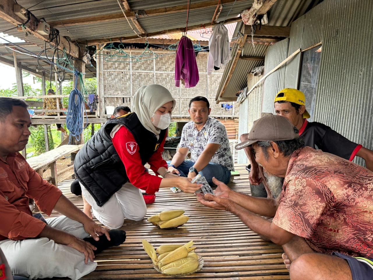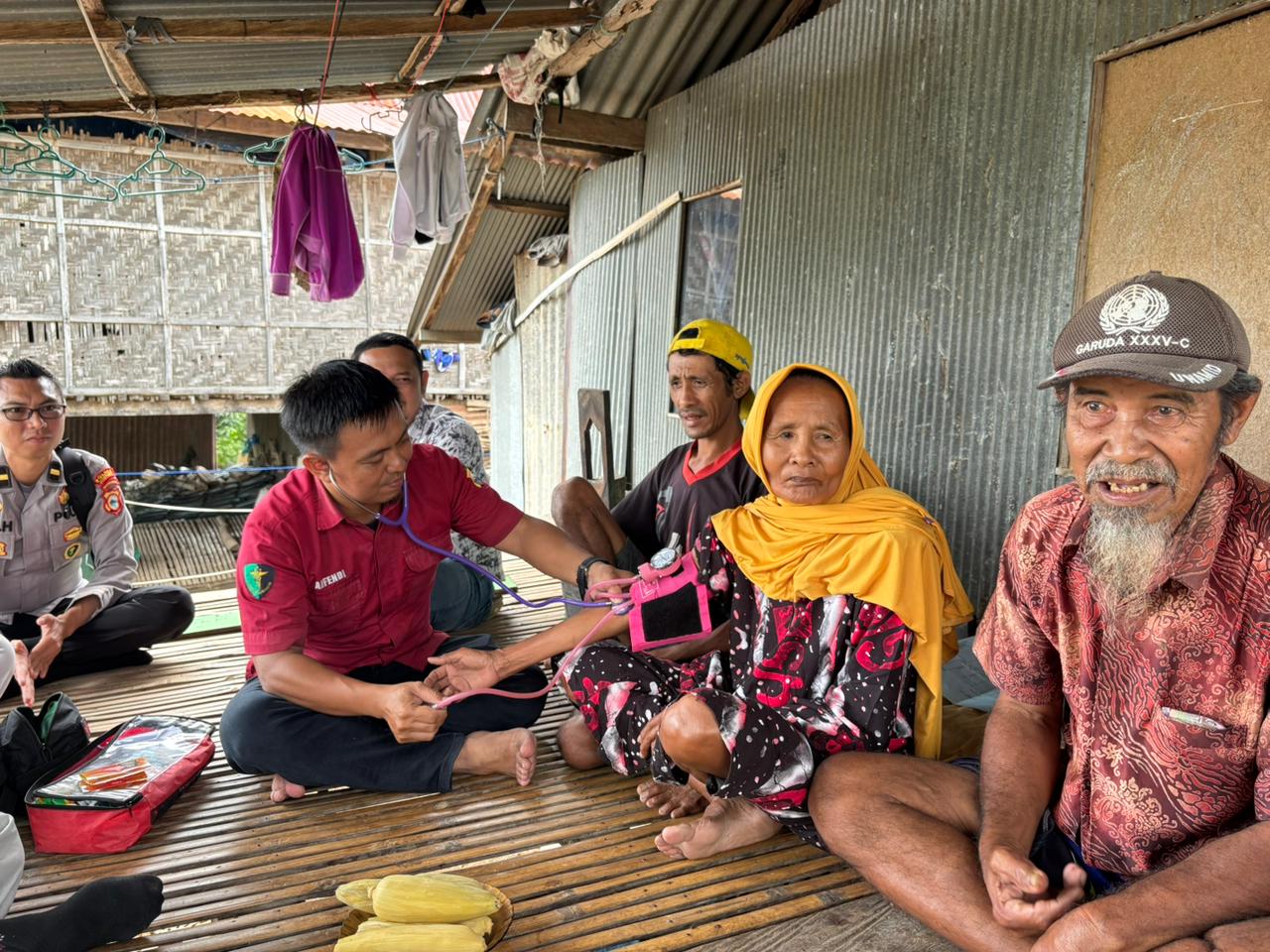 Tim Dokkes tidak hanya melakukan pemeriksaan kesehatan gratis bagi seluruh anggota keluarga, tetapi juga memberikan bantuan paket sembako dan alas tidur berupa kasur.