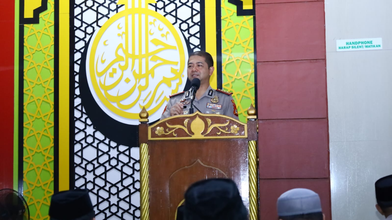 Dalam kesempatan tersebut, Kombes Pol Arya Perdana, SH, SIK, M.Si menyampaikan pesan-pesan kamtibmas kepada jamaah.