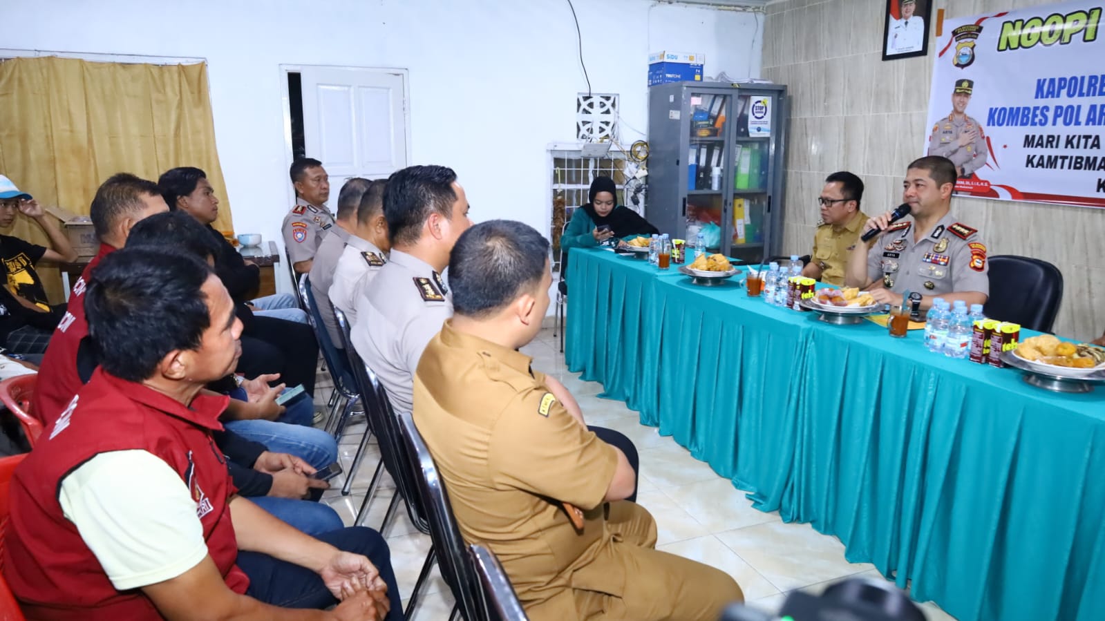 Dalam sambutannya, Kombes Pol Arya Perdana menyampaikan bahwa angka kriminalitas pada awal tahun 2026 mengalami penurunan. Menurutnya, hal tersebut bukan semata-mata hasil kerja keras kepolisian, melainkan buah dari sinergi seluruh elemen masyarakat.