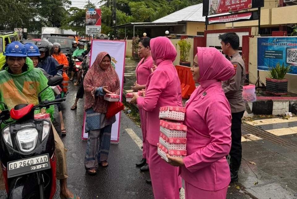 Makassar – Semangat berbagi di bulan suci Ramadhan ditunjukkan oleh Bhayangkari Ranting Bontoala Cabang Kota Besar Makassar dengan membagikan takjil kepada masyarakat yang melintas di depan Mako Polsek Bontoala, Kota Makassar, Jumat (6/3/2026).