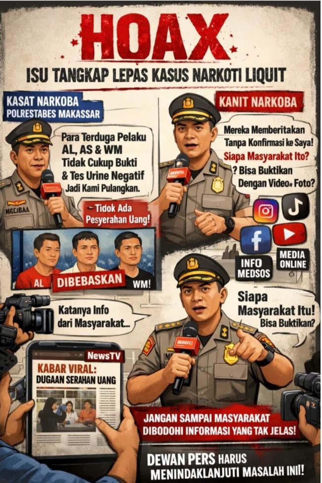 Kabar ini bermunculan diberbagai media sosial seperti TikTok dan media sosial lain serta media online yang mengundang kegaduhan lantaran tanpa ada konfirmasi oleh pihak yang sudutkan. Bahkan merugikan satuan Narkoba Polrestabes Makassar.